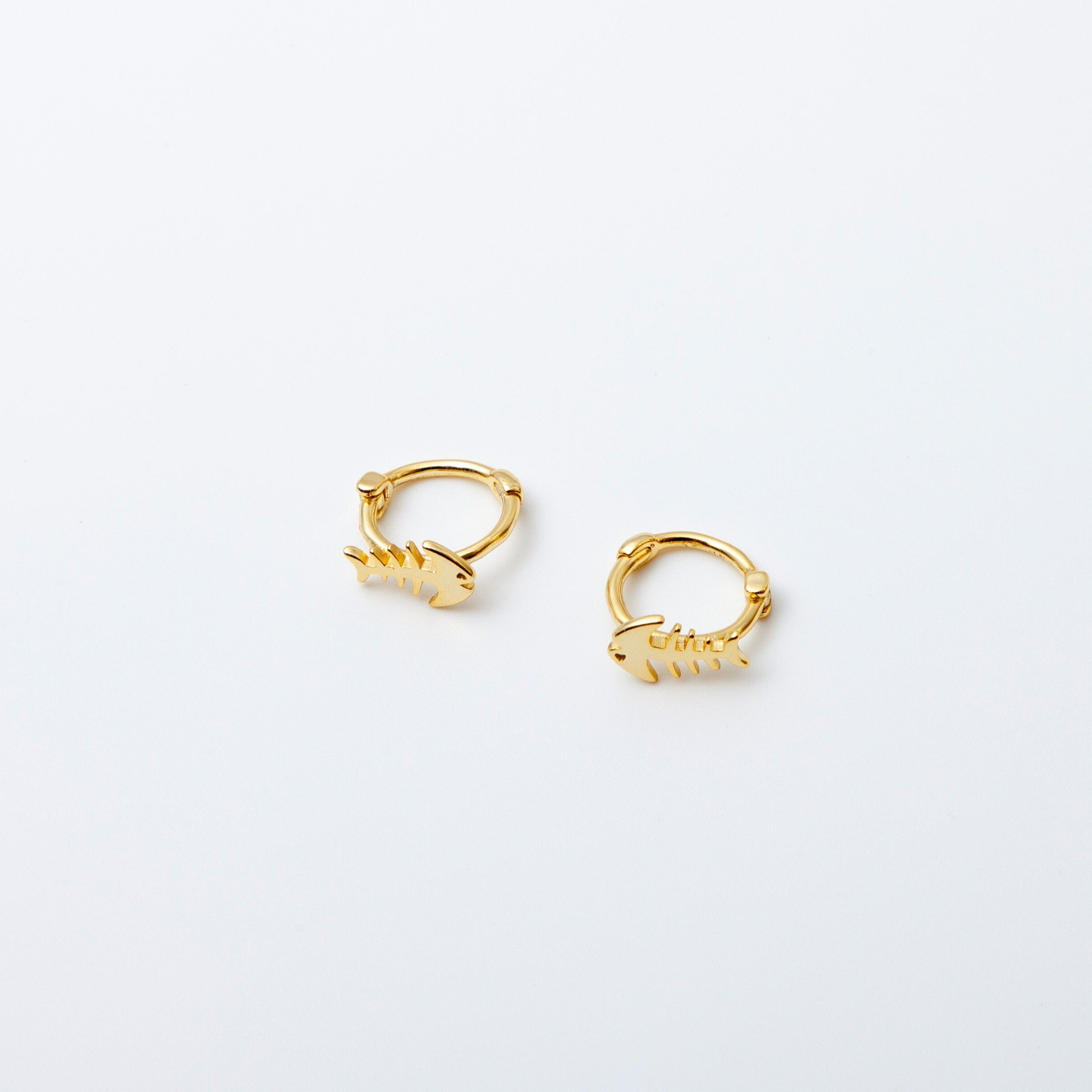 Fish Bone Huggie Hoops