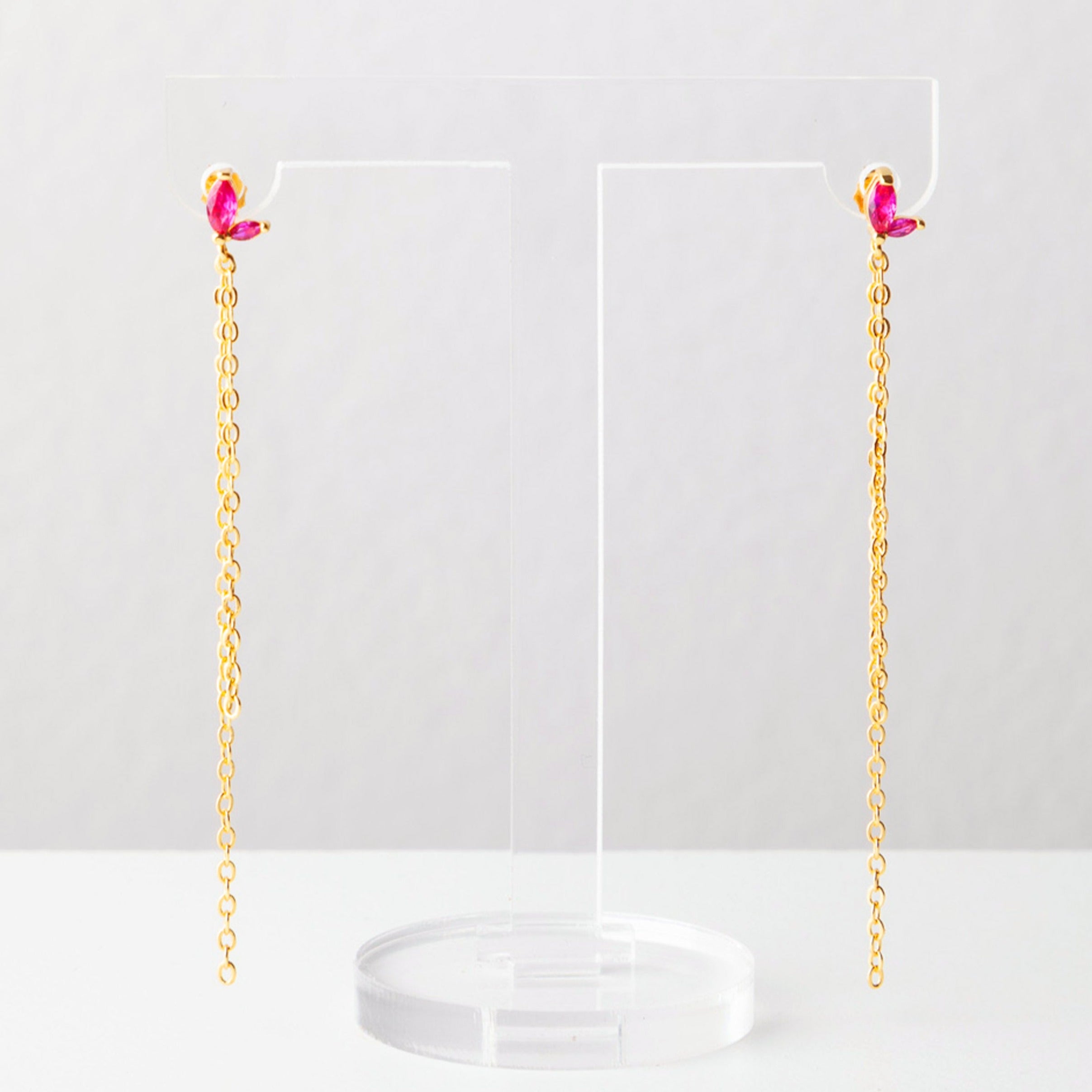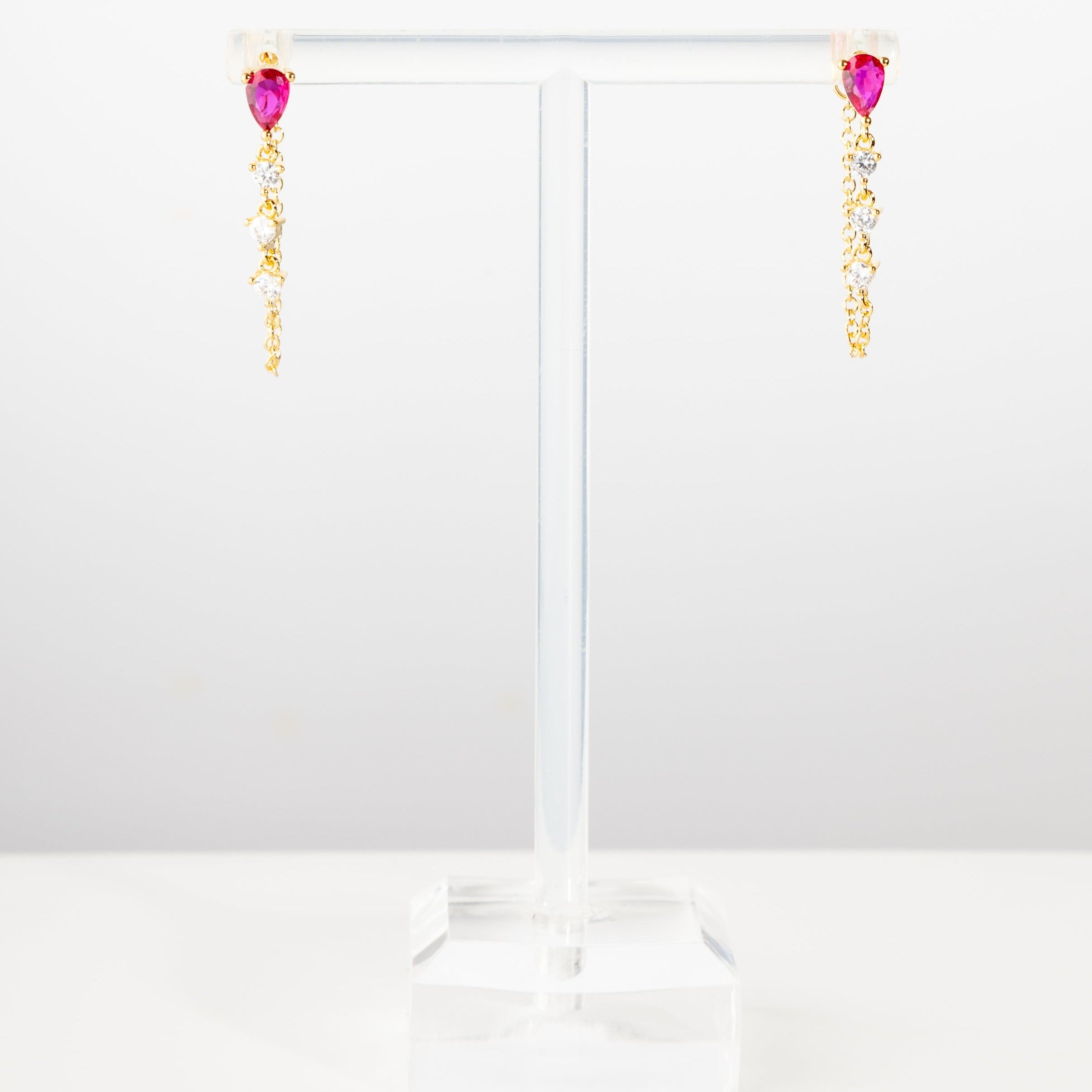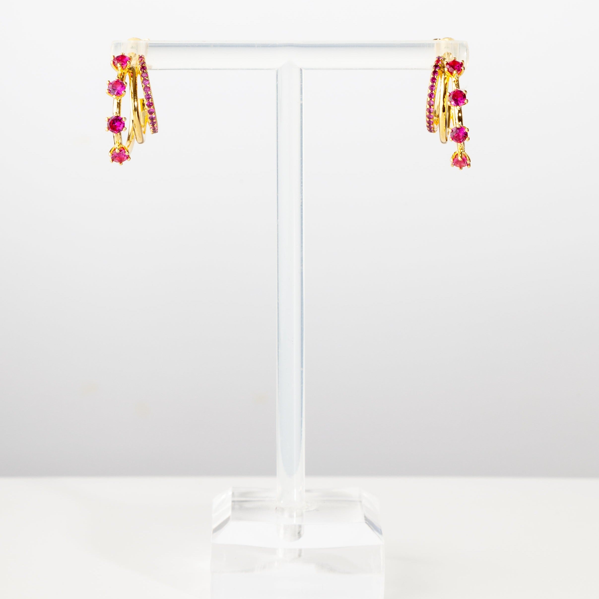Hailey Drop Huggies in Hot Pink/Gold