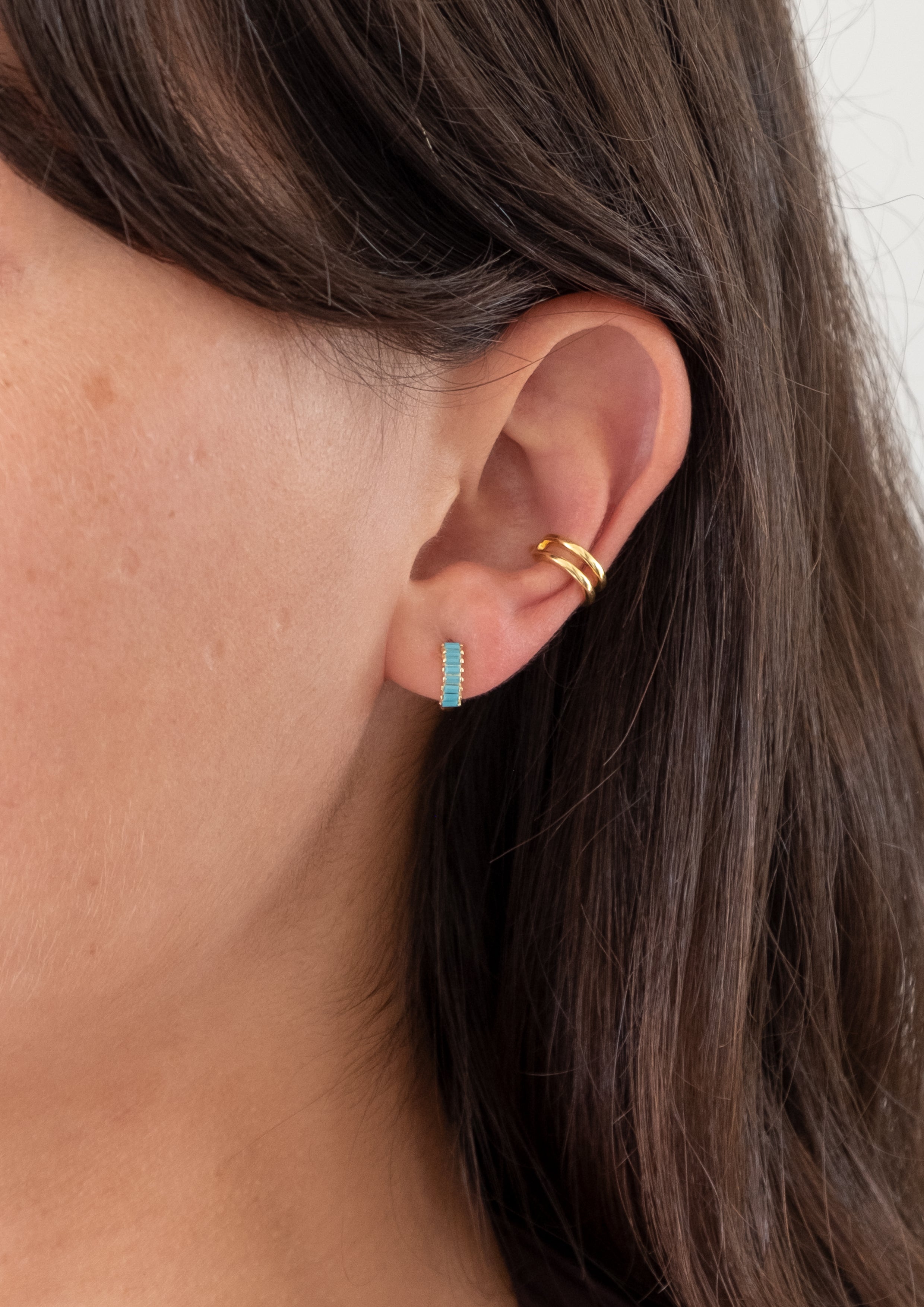 Selena Huggie Hoops in Turqoise/Gold