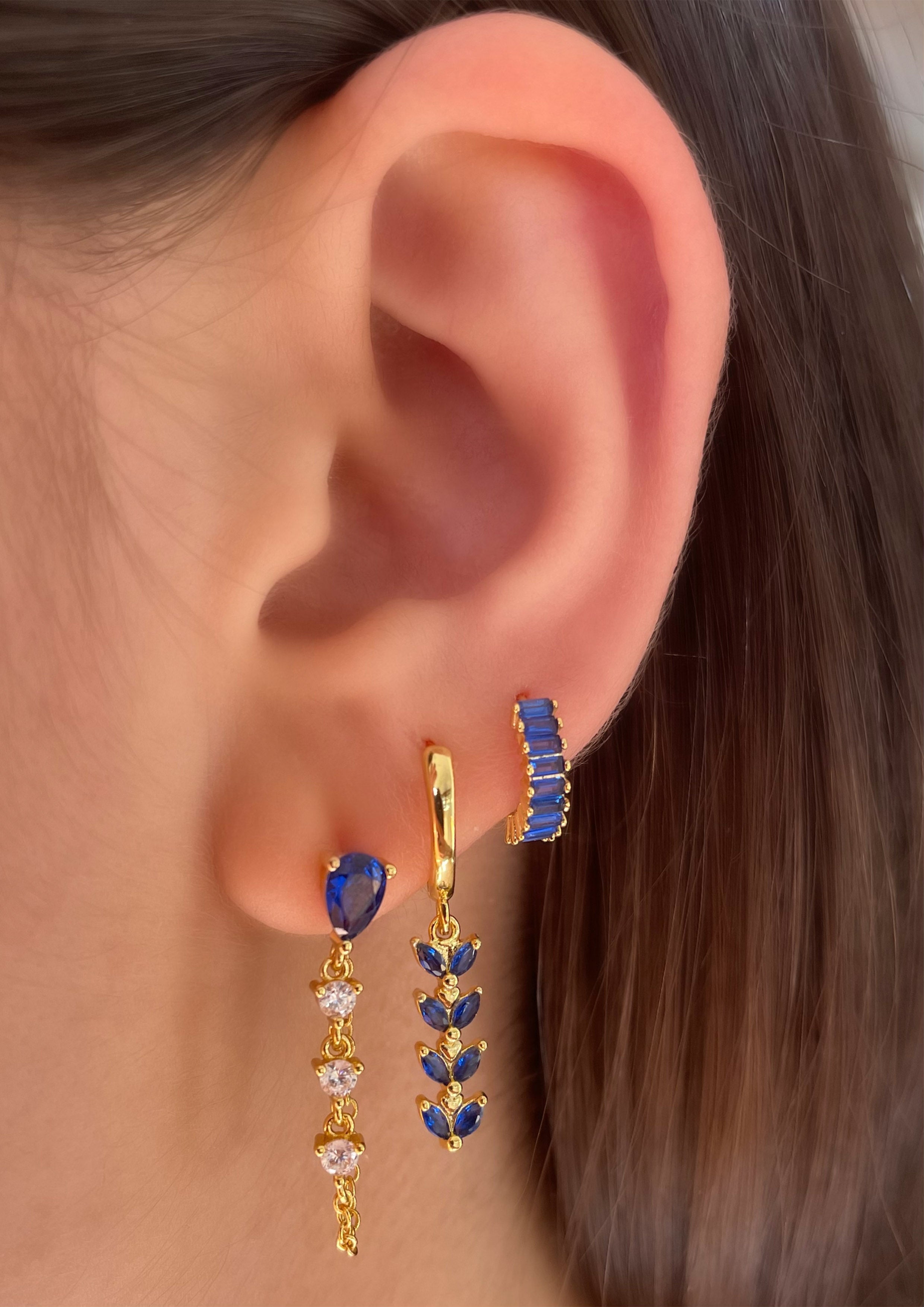 Hailey Drop Huggies in Blue/Gold