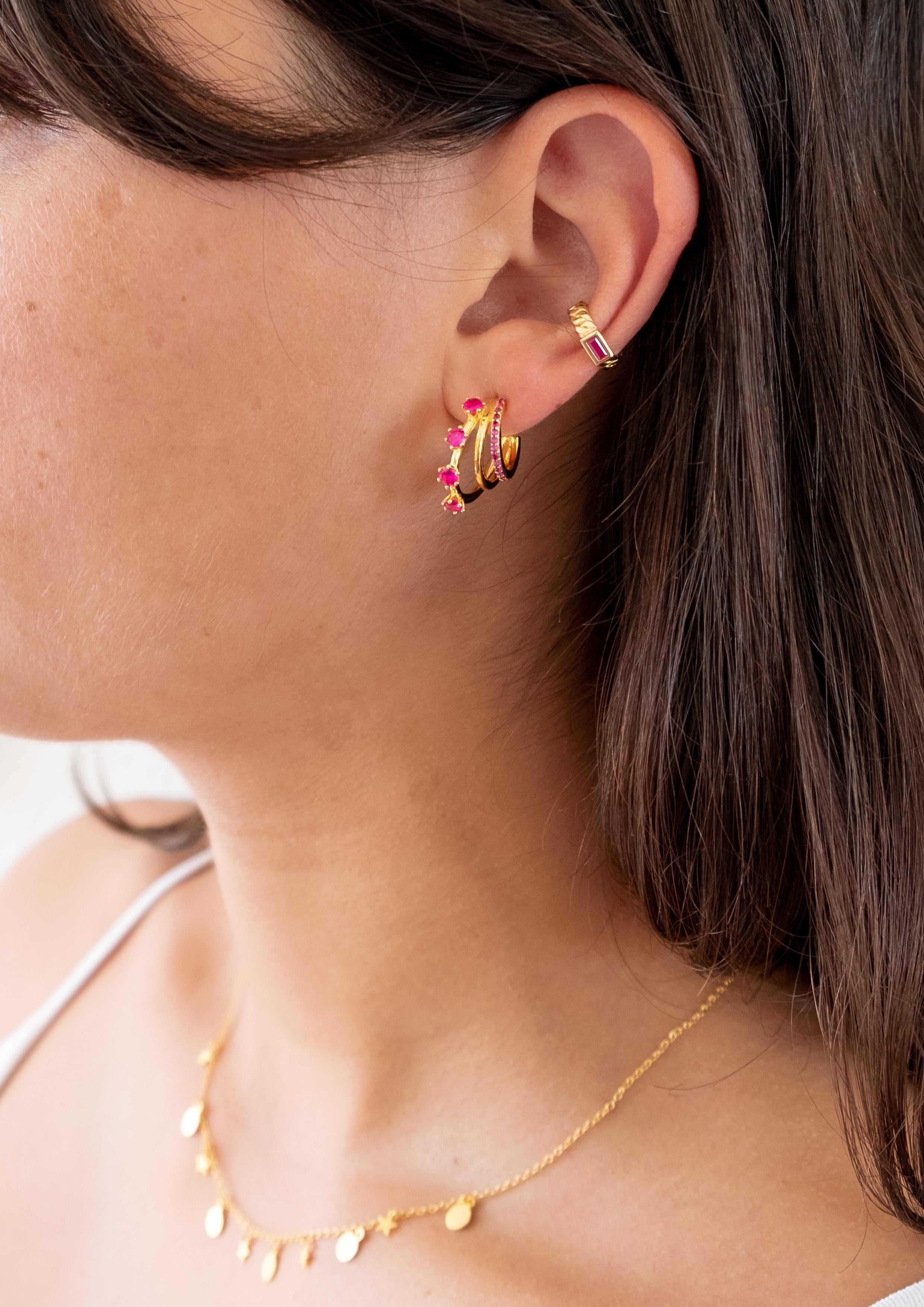 Selena Huggie Hoops in Pink/Gold