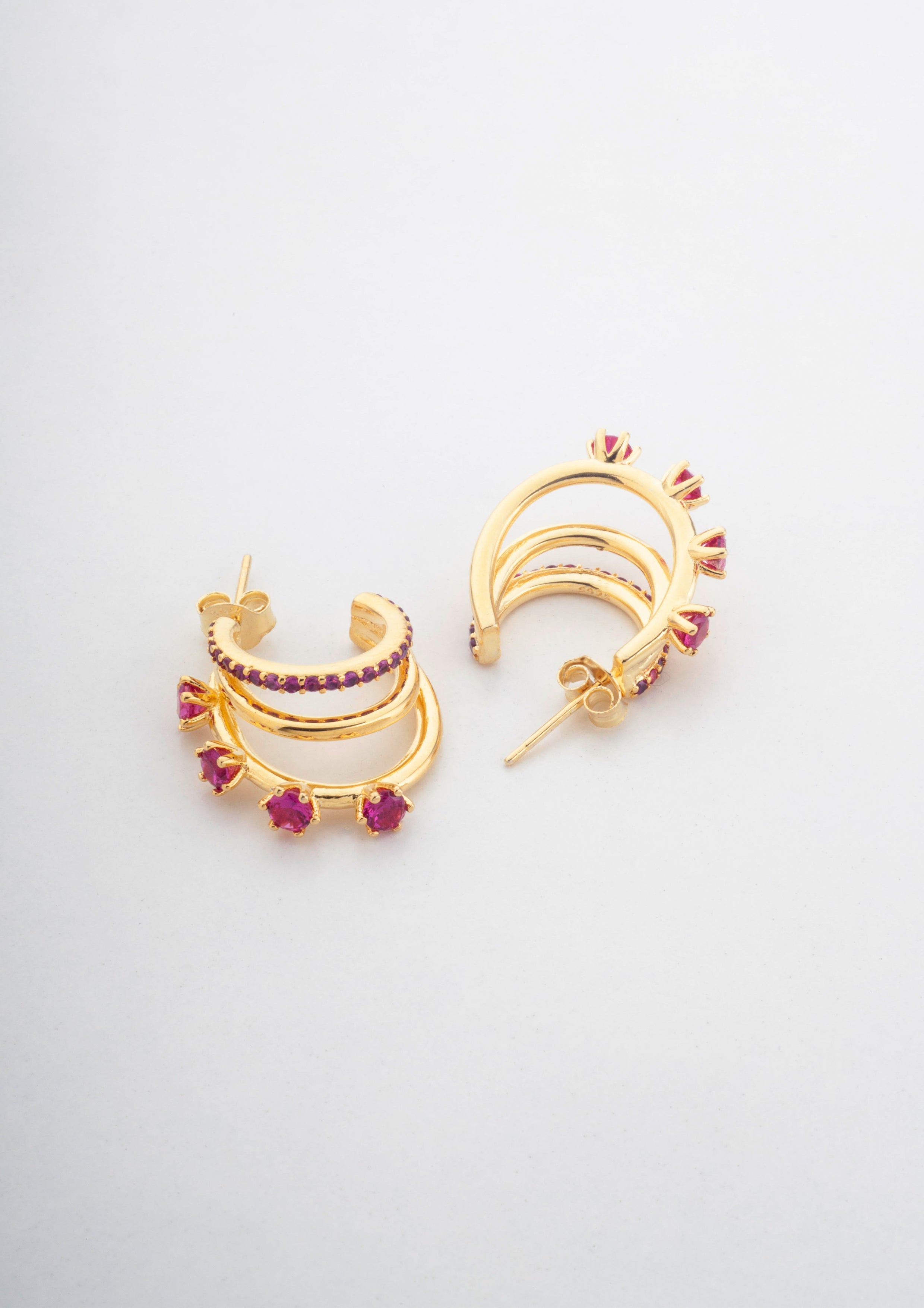 Belle Pom Pom Huggies in Hot Pink/Gold